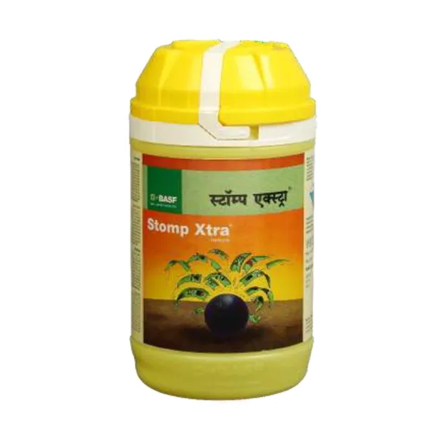 BASF Stomp Xtra Pendimethalin 38.7% CS is a premium pre-emergence herbicide designed for effective control of annual grasses and broad-leaf weeds. Its advanced capsule suspension (CS) formulation ensures uniform soil coverage and extended residual action. Applied as a blanket spray on soil, it prevents weed germination during the critical early stages of crop growth. Stomp Xtra improves crop stand, reduces weed competition, and supports higher productivity across a wide range of agricultural crops. Pendimethalin inhibits cell division and elongation in germinating weed seeds. It forms a protective herbicidal layer on the soil surface, preventing weed seedlings from emerging while remaining safe for recommended crops. Paddy, wheat, soybean, groundnut, cotton, maize, pulses, oilseeds, vegetables, sugarcane, and plantation crops (as per label recommendation)