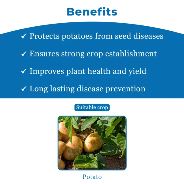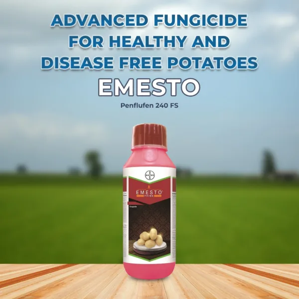 Bayer Emesto Prime is a novel fungicide that contains Penflufen 240 FS, which is used as a seed treatment. This Emesto Prime fungicide controls harmful diseases such as soil-borne pathogens in seeds. Shop for Emesto Prime now and promote healthy crop growth. Early Germination: Emesto Prime enables crops to germinate quickly, before diseases can affect the seeds. Better Crop Quality : Effective disease management with Penflufen results in crops with improved size and shape. Healthier Crops: Emesto Prime fungicide offers complete disease control, which leads to healthy crop growth. Higher Yield: Penflufen 240 FS controls the diseases at an early stage, allowing crops to thrive. Penflufen 240 FS has an SDHI (succinate dehydrogenase inhibitor) action. Emesto Prime is effective against harmful diseases such as black scurf. Read the instructions carefully before using the Emesto Prime. Do not smoke, eat, or drink while using the Penflufen 240 FS. Wash your hands immediately after using the Emesto Prime fungicide. Bayer Emesto Prime fungicide is for agricultural purposes only.