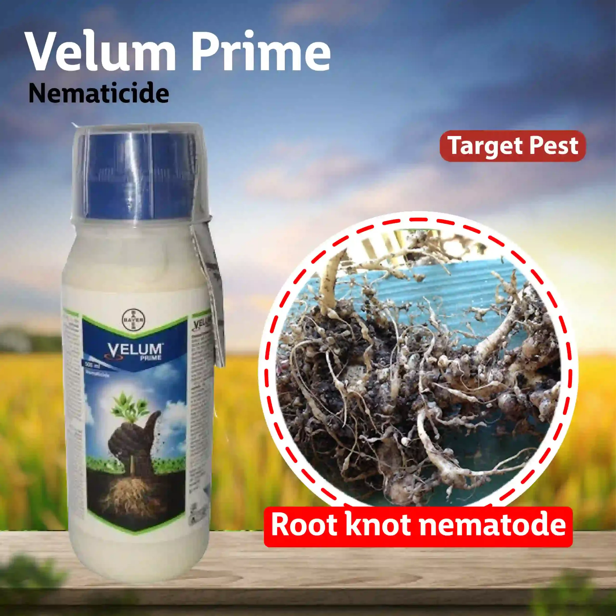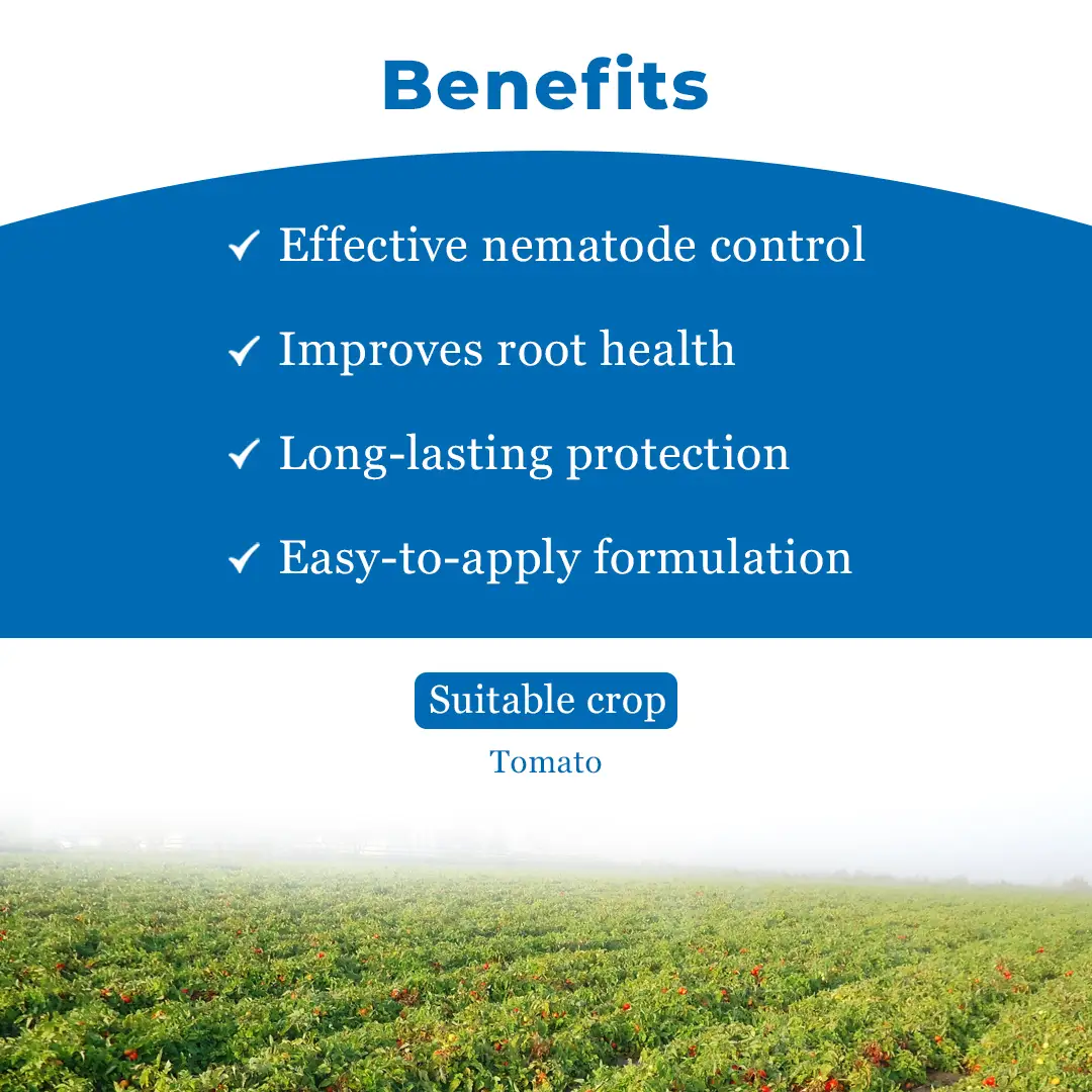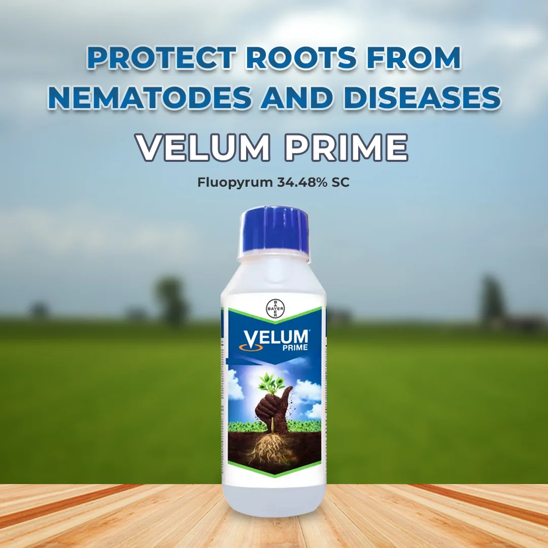 Velum Prime is an advanced nematicide that protects crops from root knot nematodes and prevents root damage. Velum Prime nematicide provides long-lasting protection to crops like tomato and cucumber, ensuring healthy crop growth. It ensures quick control, long-lasting protection, and stronger roots with effective nematode control through systemic action. Quick-Action : Velum Prime nematicide is quickly absorbed by the roots of the crops and provides immediate results within a few hours of application. Maintains Soil Health : It prevents diseases nematodes related diseases and protects soil structure. Eco-friendly : Velum Prime nematicide is relatively less toxic and safe to use, ensuring low chemical impact on the environment. Velum Prime nematicide is suitable for crops like cucumbers and tomatoes. Velum Prime nematicide is effective against root-knot nematodes. Cover your skin with protective gear like masks, gloves and eyeglasses. Velum Prime nematicide is intended for agricultural purposes only.