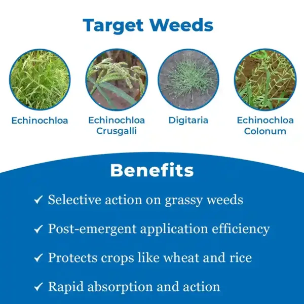 Bayer Whip Super is a post-emergent herbicide that controls various weeds like Eleusine indica, Dactyloctenium aegyptium, and others. This herbicide works by inhibiting essential enzymes in weeds through systemic action. The Whip Super herbicide is safe to use as it breaks down faster and has selective properties. Flexible Application : Whip Super herbicide is flexible regarding the time of application, as it is a post-emergent herbicide. Broad-spectrum : This herbicide has a broad spectrum of activity and controls most of the common grassy weeds. Effective Working : The Bayer Whip Super herbicide provides systemic and contact-based action, ensuring thorough weed removal. Safe Crop Growth : The Bayer Whip Super rapidly breaks down in the soil after application and does not affect the crops that grow afterwards. Bayer Whip Super herbicide is applicable for soybeans, rice, cotton, and black gram. Bayer Whip Super herbicide effectively works against Digitaria spp., Eleusine indica, Bracharia sp., and other harmful weeds. Store the product according to the instructions in the manual. Bayer Whip Super herbicide is for agricultural and gardening purposes only.