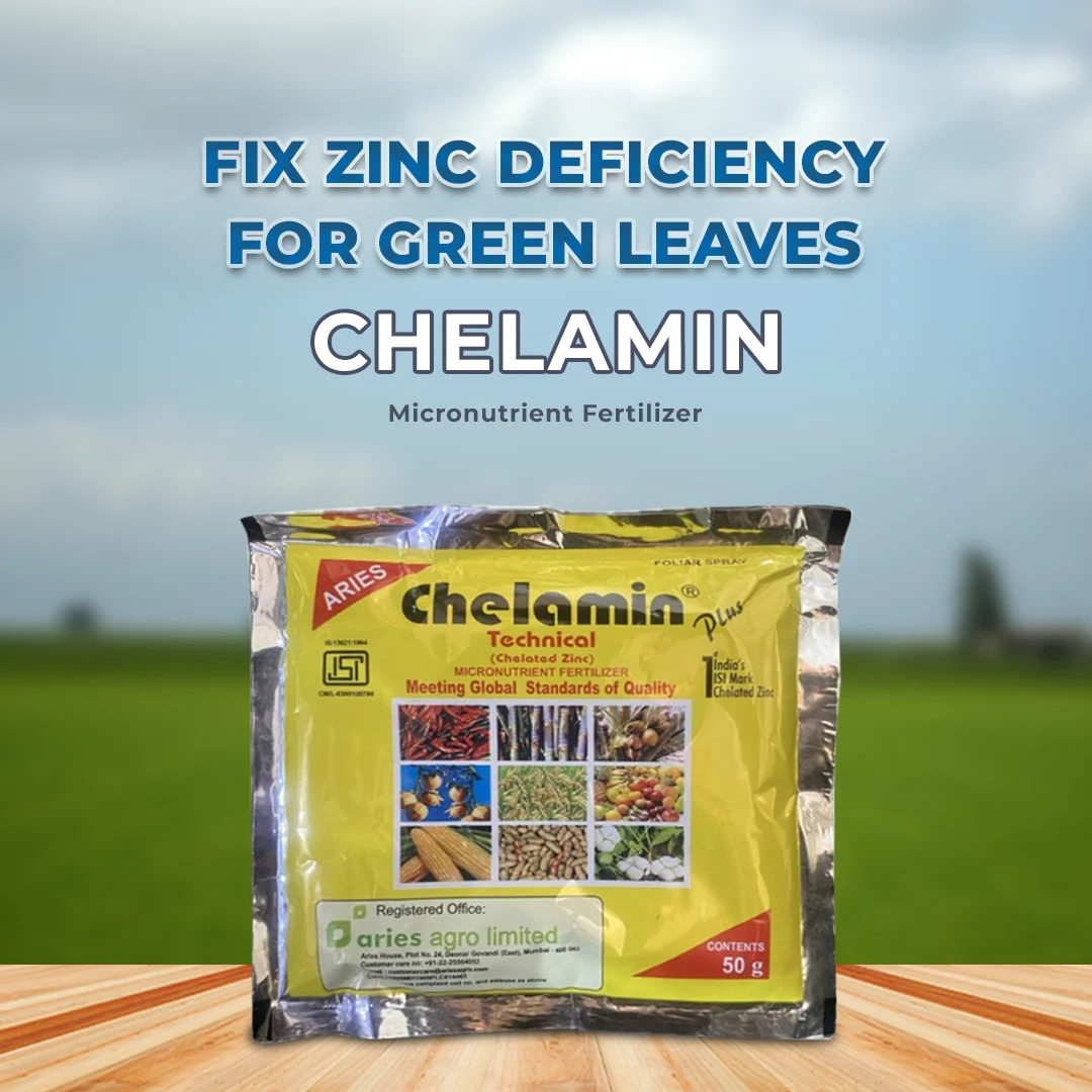 Aries Chelamin Plus Zinc is a micronutrient fertilizer that improves nutrient deficiency in the crops and promotes better growth. Chelated zinc enhances chlorophyll production in crops and ensures better-quality fruits with larger size, better taste, and enhanced color. Zinc EDTA micronutrient fertilizer enables metabolism in the crops and boosts yield potential, offering a healthy harvest. Hormone Regulation : Aries Chelamin micronutrient fertilizer regulates hormones and improves fruiting and flowering in the crops. Enhance Root Growth : Chelamin Zinc EDTA promotes stronger root and stem growth by preventing zinc deficiency, thereby improving crop growth. Stress Tolerant : Chelated Zinc EDTA makes crops resistant to all types of environmental conditions, such as drought, heavy rain, and heat. Higher Yield : Aries Chelamin Plus provides essential nutrients to crops, reducing crop loss and resulting in increased yield. Easily Soluble : Aries Chelamin is available in powder form, which is easily soluble in water, allowing hassle-free application. Chelated Zinc is suitable for vegetables, flowers, fruits, pulses, and ornamental plants. Avoid contact with skin and eyes while using the Chelated Zinc. Aries Chelamin micronutrient fertilizer is for agricultural and gardening purposes only.