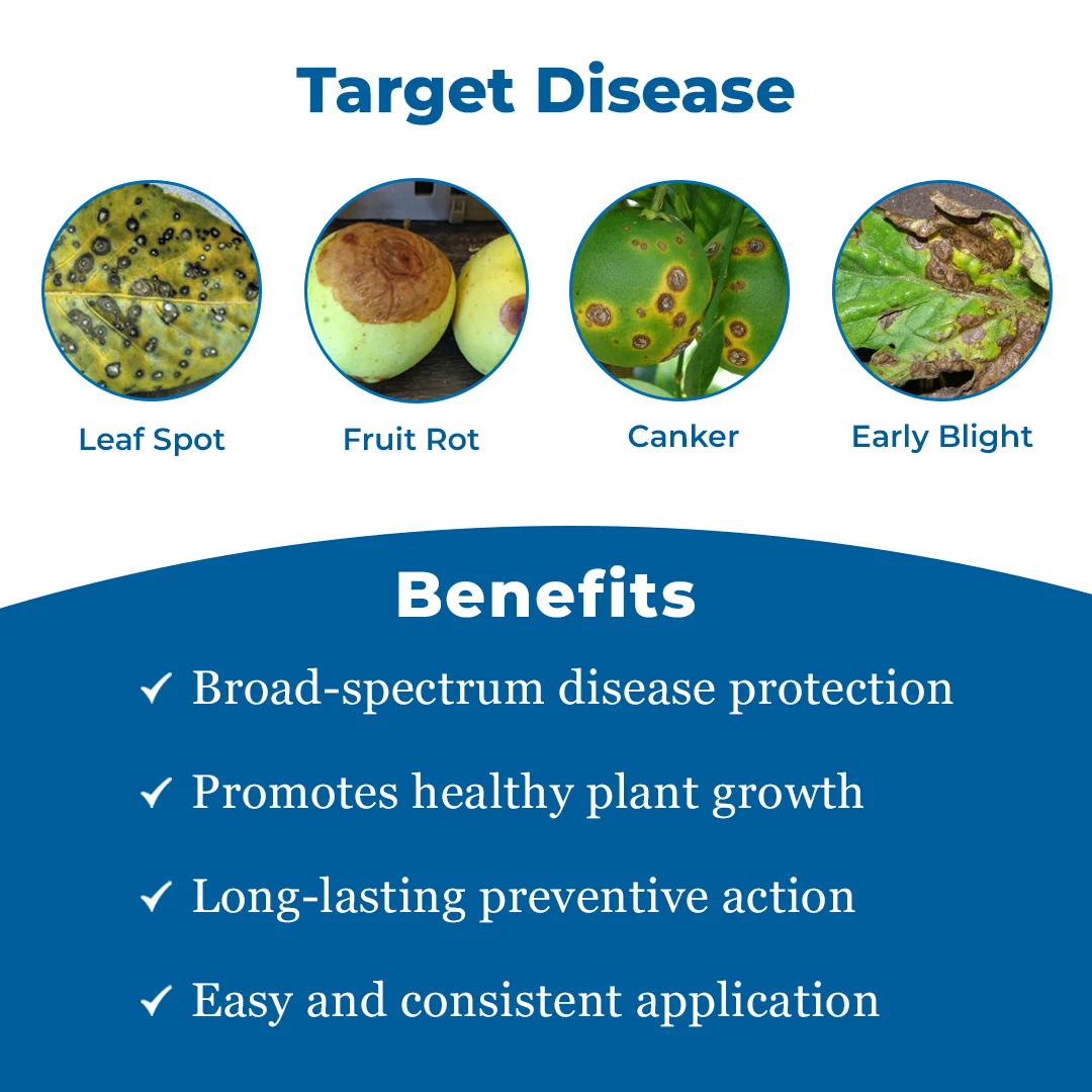 Crystal Blue Copper is a broad-spectrum fungicide that protects crops against fungal diseases through a contact mode of action. Crystal Blue Copper fungicide creates a protective layer on crops and prevents fungal growth on the surface. This highly effective fungicide provides long-lasting protection to crops like potatoes and grapes by preventing the fungal cell reproduction process. It prevents the development of fungal resistance to fungicides, making it the best choice for disease control. Broad-Spectrum Protection : Crystal Blue Copper fungicide tackles various diseases like downy mildew, black sank, and frog eye leaf. Residue-Free Action : It does not leave residue on the crops, making it safe for the crops and an eco-friendly option to use. High Compatibility : Blue Copper fungicide is compatible with other agro inputs, which increases its potency and provides better results. Long-Lasting : Blue Copper fungicide remains effective on the crops for a longer period, making it cost-effective for the farmers. Crystal Blue Copper fungicide can be applied to citrus, chilli, betel, banana, cumin, potato, paddy, tobacco, tomato, tea, grapes, coconut, cardamom, and coffee. Crystal Blue Copper fungicide is effective against a wide range of diseases, including downy mildew, early and late blight, clump rot, leaf spot, black rot, and rust, among others. Read the instructions carefully before applying the product. Store the product safely away from the reach of kids and animals. Crystal Blue Copper fungicide is for agricultural and gardening purposes only.