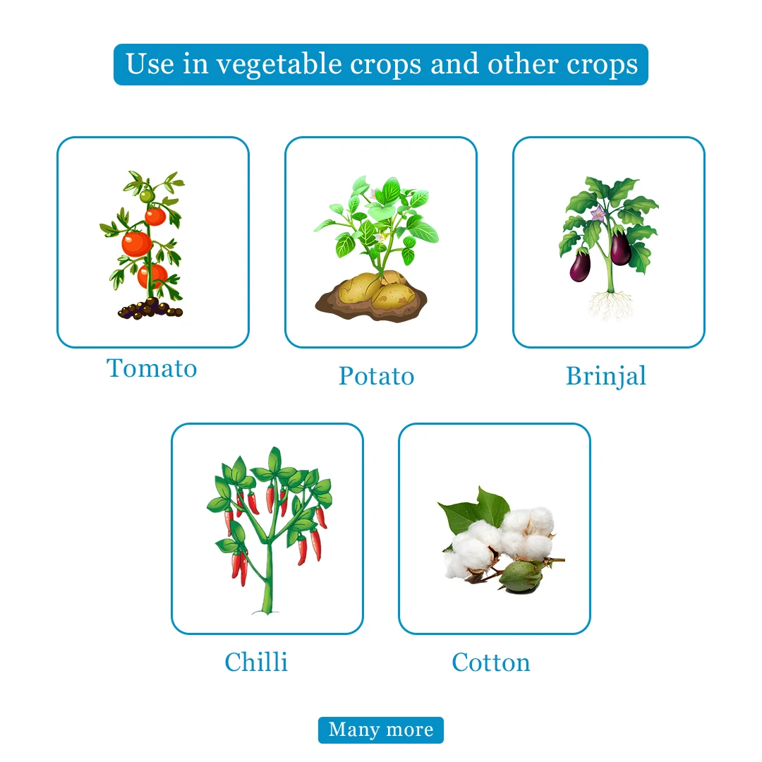 Crystal Kyoto is a broad-spectrum fungicide that controls major fungal diseases such as powdery mildew and downy mildew through systemic action in crops. This fungicide enters various parts of the crop and moves within the plant to protect it from fungal infections. Crystal Kyoto fungicide works effectively during active crop growth stages, ensuring complete disease management. This fungicide provides continuous protection, improves growth, and prevents crop damage, resulting in a healthy harvest. Dual Mode of Action: Crystal Kyoto Fungicide enhances the efficiency of the fungicide and cures already affected crops. Long-Lasting: Kyoto provides durable protection that lasts even after rain with the help of systemic action. Quick Results: This fungicide is rapidly absorbed by the leaves of the crops and provides immediate results within a few hours of application. Easy to Use: Crystal Kyoto fungicide can be applied with the help of foliar application, making it convenient to use the fungicide. Crystal Kyoto fungicide is suitable for chilli, tomato, potato, grapes, bottle gourd, and other crops. Crystal Kyoto Fungicide is effective on powdery mildew, dieback, early blight, fruit rot, and other diseases. Crystal Kyoto fungicide is intended for agricultural purposes only.