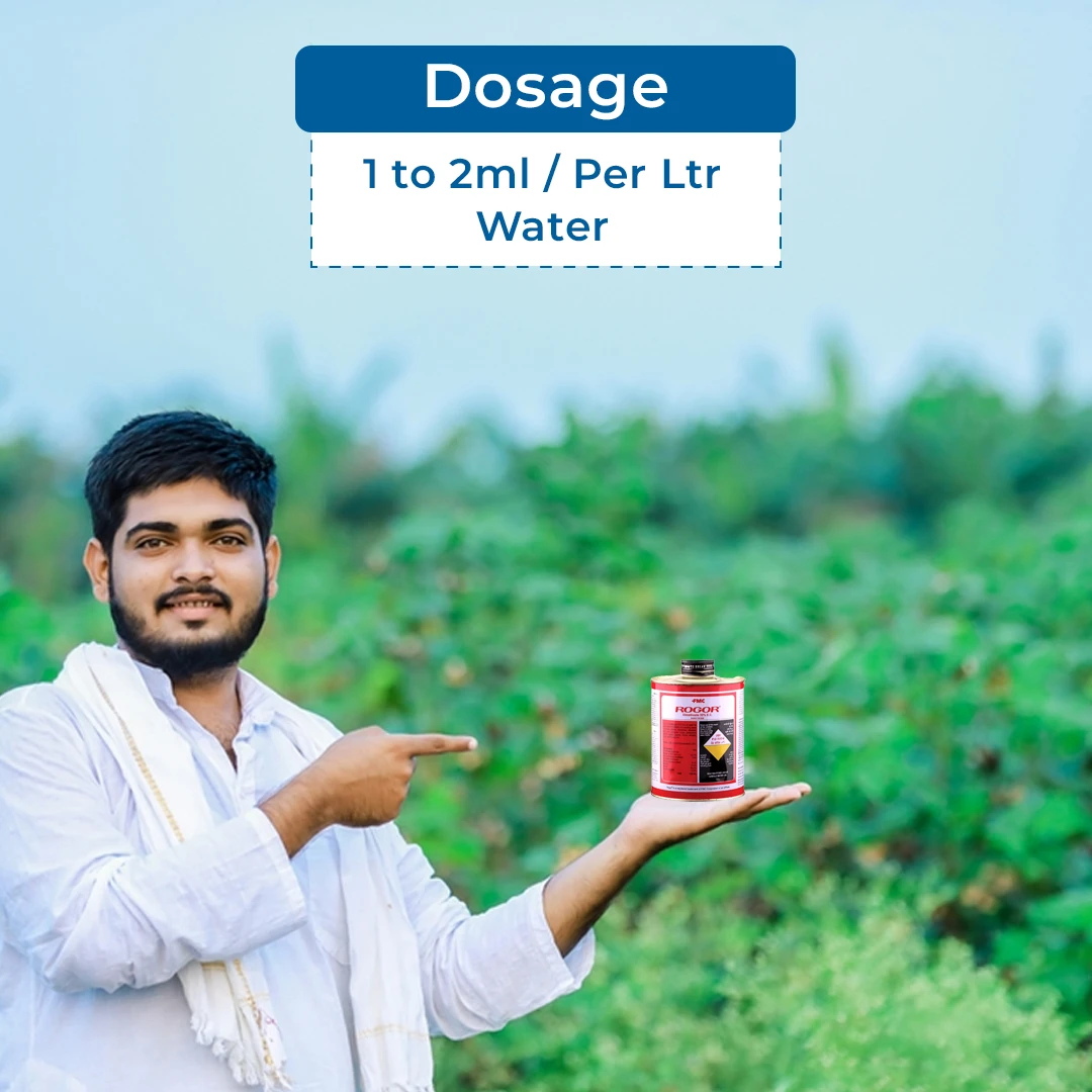 FMC Rogor insecticide is a broad-spectrum insect killer that works by disrupting the insect’s nervous system, leading to paralysis and death. The Rogor insecticide provides systemic action and is very effective against sucking and chewing pests on different types of crops. Applying this insecticide ensures prolonged protection along with healthy plant growth. Broad-Spectrum Protection : Rogor insecticide can control a wide range of insects, including aphids, mealybugs, hoppers, and more. Long-Lasting Protection : This insecticide provides systemic protection, ensuring prolonged effectiveness. Fast-Acting : FMC Rogor insecticide features a quick-action formula that rapidly protects crops from pest attacks with contact action. Easy to Use : This insecticide EC (Emulsifiable Concentrate) formulation comes in a liquid formula for easy mixing and hassle-free application. FMC Rogor insecticide is suitable for crops such as tomatoes, onions, cabbage, cauliflower, potatoes, okra, bananas, and apples. Rogor insecticide targets aphids, mealy bugs, hoppers, jassids, shoot borers, and scale thrips. Store the insecticide according to the instructions in the manual.