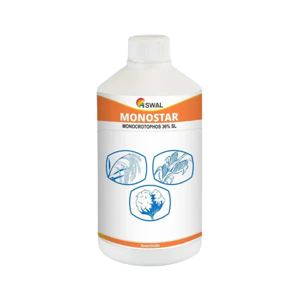 Monocil is a broad-spectrum insecticide that is formulated with Monocrotophos 36% SL. The Monocil insecticide is effective against a large number of pests on cotton and tea crops through systemic and contact action. Monocrotophos 36% SL insecticide ensures complete crop protection from sucking and chewing pests, ensuring a healthy harvest. Broad-Spectrum Insecticide: Monocil insecticide controls a wide range of pests such as jassids, aphids, and other pests. Rain fastness: Monocrotophos 36% SL works effectively on the crops even after the rain. Long-lasting: Monocil insecticide provides long-lasting protection against pests through a systemic mode of action. Quick Protection: Monocil insecticide kills pests immediately upon contact with the crops. Easy to Use: Monocrotophos 36% SL’s (Soluble Liquid) formulation is easy to apply on the crops with foliar spray. Monocrotophos 36% SL has a systemic, contact, and stomach mode of action. Monocil is suitable for crops such as cotton, citrus, and tea. Monocil insecticide is highly effective against jassids, bollworms, leaf miners, tea mosquito bug, mites, and other sucking insects. Wear Personal Protective Equipment (PPE) to cover your skin and eyes.