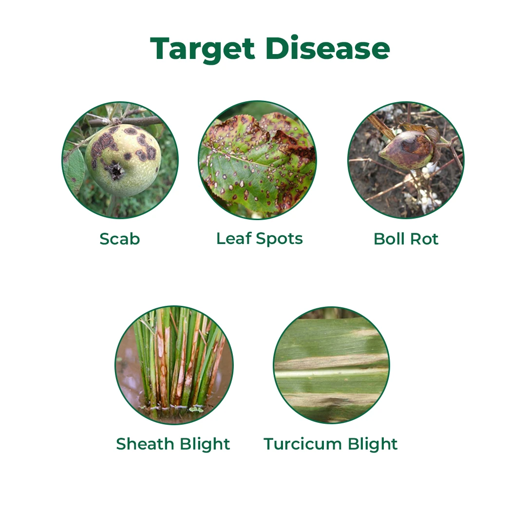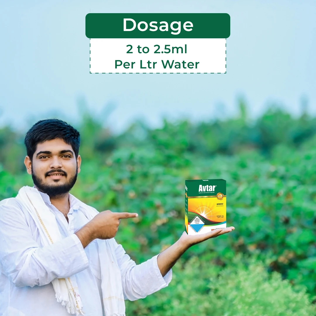 Avtar is a dual-action fungicide that provides protective and curative action to protect crops from fungal diseases like black rot and sheath blight. Avtar fungicide is compatible with commonly used pesticides, increasing the overall effectiveness of the product. It inhibits fungal cell development and stops the formation of fungal diseases through systemic and contact action. This fungicide is safe to use for crops and the environment. Broad-Spectrum Protection : Avtar fungicide effectively treats a wide range of fungal diseases, including sheath blight, brown spot, and leaf spots. Low Toxicity : This fungicide has low toxicity levels and is relatively safer to use with minimal risk, making it eco-friendly. Improve Nutrient Content : Avtar fungicide contains an essential micronutrient, zinc, that plays a crucial role in protein synthesis and growth regulation. Higher Yields : A significant increase in crop growth can be noticed as it helps crops grow pest-free and healthy. Easy to Use : This product comes in a Wettable Powder (WP) form, making it easy to use and providing a simple application process. This fungicide is applicable to paddy, tea, apple, maize, and cotton. Avtar fungicide is effective against Sheath Blight, Brown Spot, Blast, Grain Discoloration, Black Rot, Grey Blight, Blister Blight, Scab, Premature Leaf Fall, Alternaria Leaf Spot/Blight, Powdery Mildew, Core Rot, Maydis Leaf Blight, Turcicum Blight, Leaf Spots, and Boll Rot. Read the instructions carefully before applying the product. Store the product safely out of the reach of children and animals. Avtar fungicide is for agricultural and gardening purposes only.