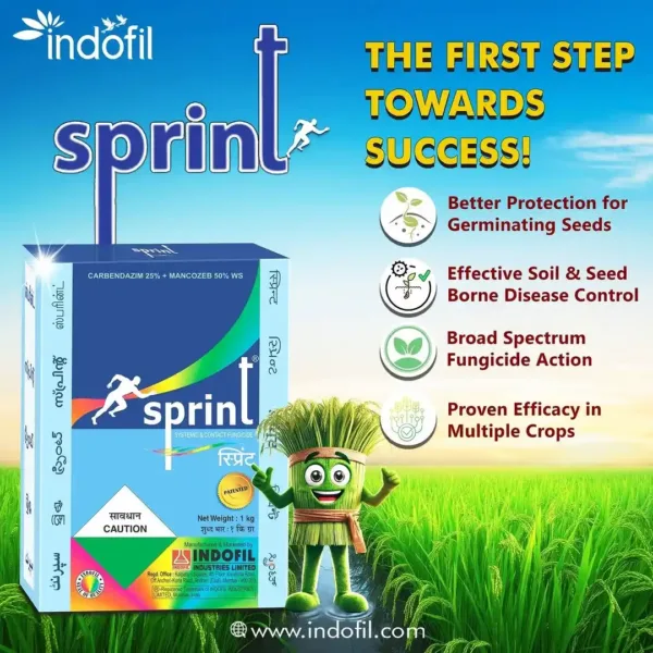 Indofil Sprint fungicide provides broad-spectrum control of diseases like collar rot and root rot on crops. Indofil Sprint fungicide provides uniform coverage to the crops and creates a protective layer that prevents diseases in crops, including potato and groundnut. This fungicide ensures continuous protection and lasts for a longer period through a systemic and contact mode of action. It also offers essential nutrients like Zinc and Manganese to the crops and promotes higher growth. Broad-Spectrum Control : Indofil Sprint fungicide is effective against various diseases, including collar rot, dry root rot, tikka black scurf, and late blight. Dual-Action Formulation : Indofil Sprint fungicide controls fungal pathogens and prevents diseases through systemic and contact action. Enhance Crop Health : This fungicide inhibits fungal diseases and reduces the stress on the crops, allowing them to establish healthy crop development. Complete Crop Protection : It has a protective and curative action, curing crops with already affected diseases and preventing further disease risk. Indofil Sprint fungicide is suitable for crops such as potato and groundnut. Sprint fungicide is effective against diseases such as collar rot, dry root rot, tikka black scurf, and late blight. Store the Sprint systemic and contact fungicide in a safe place.
