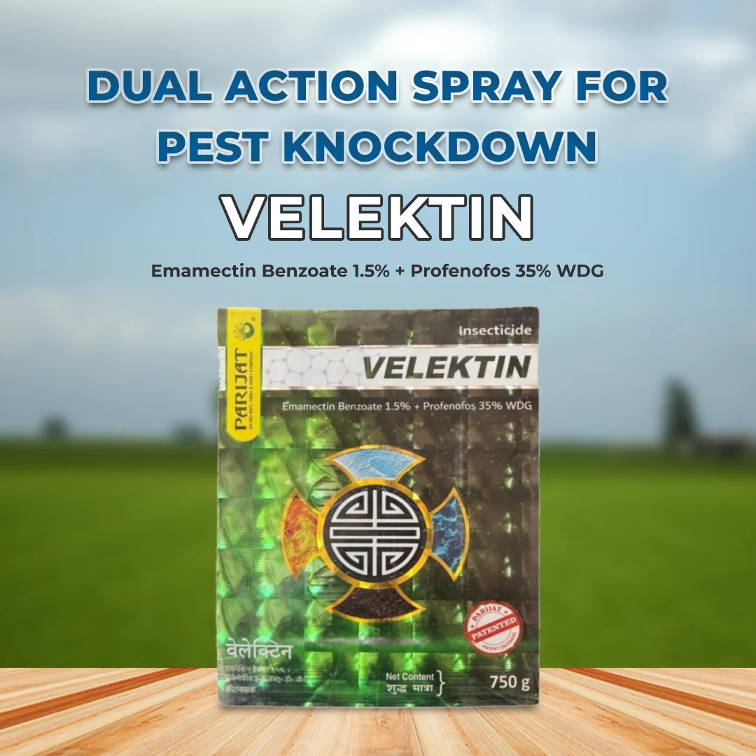 Parijat Velektin Emamectin Benzoate 1.5% + Profenofos 35% WDG, An Insecticide For Cotton, Maize & Chilly Crops.