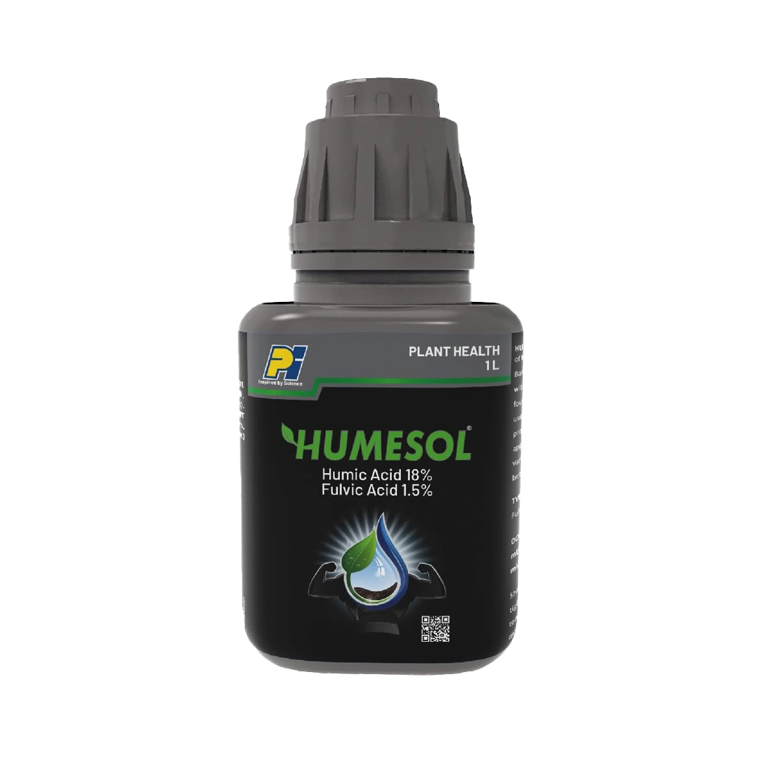 Pi Humesol is a natural booster for soil and crops containing Humic Acid 18% + Fulvic Acid 1.5%. This aqueous concentrated solution is designed to improve nutrient availability in the crops. It can be applied to the soil through broadcast, band, drip, and foliar applications in fruit and vegetable plantations. Strong Root Development : Pi Humesol improves the biological and physical structure of the soil, ensuring better root formation. Enhance Water Uptake : This Humic Acid 18% + Fulvic Acid 1.5% formula improves water retention capability and promotes healthier crop growth. Improves Plant Metabolism : The Pi Humesol enhances nutrient absorption in the soil, increasing plant metabolism. Compatibility : Pi Humesol is compatible with various nutrient fertilizers, plant protectors, and soil amendment products. Healthy Crop Growth : Humic and Fulvic acids reduce nutrient deficiency in the soil, which ultimately leads to a healthy harvest. Pi Humesol is suitable for crops like fruits, cereals, pulses, ornamental crops, vegetables, and more.