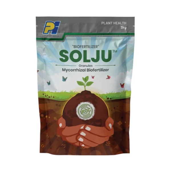 Pi Solju granules is a biofertilizer which contain natural endomycorrhiza that has been improved by iroc technology. solju granules encorages the growth of both root system and the crop, therby helping crops to effectively collect water & nutrients from outside the nutrient depletion zone, hence improving nutrient uptake and plant’s tolerance to drought. Unique IROC technology ensures purity and quality of microbial spores. Soil Health Enhancement Improves soil organic carbon by process of carbon sequestration