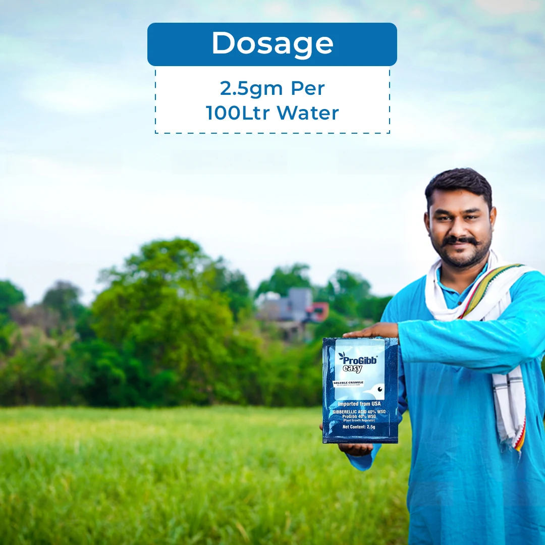 Sumitomo Progibb Easy is a versatile plant growth regulator that consists of natural components. These components are essential for crop development and play a crucial part in growth regulation. This growth regulator improves flowering and seed germination, providing an early and healthy harvest. It also increases the overall size of the fruits and enhances their color, producing better quality crops. Higher Yield : Progibb Easy increases flower growth and reduces fruit drop, increasing crop production. Long-Lasting Effect : This plant growth regulator offers a durable effect and helps support your plant for an extended time. Improved Crop Quality : Evenly sprayed plant growth promoter stimulates growth and promotes crop quality. Easy to Use : Sumitomo Progibb Easy can be used with foliar spray, eliminating the need for heavy sprayers and allowing effortless application. For Foliar Spray Application : Use 2.5 gm per 100 liters of water. Wash your hands properly after using the plant growth regulator. Sumitomo Progibb Easy is used for agricultural purposes only.
