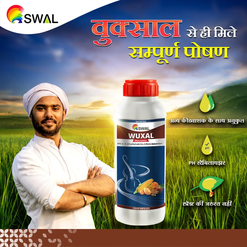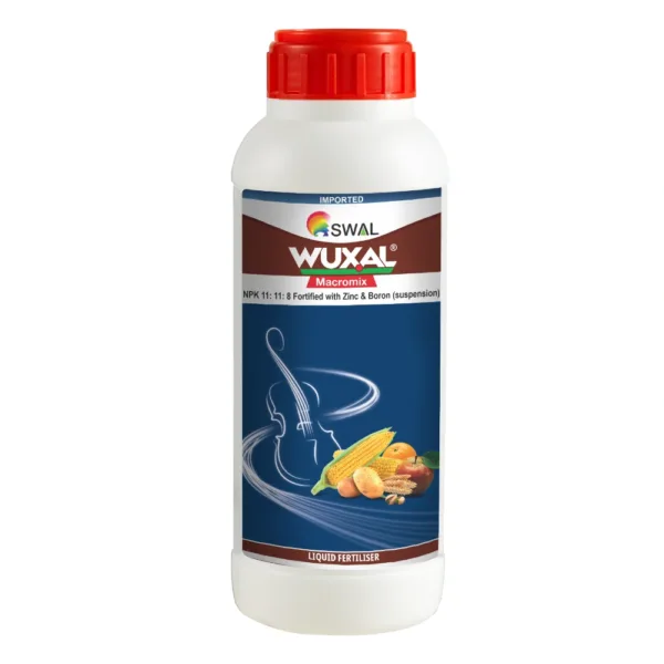 Swal Wuxal is a chelated micronutrient fertilizer that improves nutrient uptake in the plants and enhances crop growth. This fertilizer is used on the crops during their critical growth stages to match nutrient requirements. It provides excellent coverage to all the parts of the crops and enhances plant health. Wuxal fertilizer boosts flowering and fruiting in the crops, ensuring a successful harvest at the farm. Prevents Nutrient Deficiency: Swal Wuxal fulfills the nutrient requirements of the crops and prevents yellowing of leaves as well as discoloration. High Compatibility: This fertilizer is compatible with commonly used pesticides, increasing the overall efficacy of the fertilizer and reducing the need for multiple applications. Increase Crop Production: Wuxal Macromix reduces flower and fruit drops and also promotes vegetative growth, ensuring higher yield. Uniform Coverage: Wuxal Macromix penetrates deeply into all parts of the crop and supports optimal nutrient uptake, resulting in robust growth. Improves Stress Tolerance: Wuxal fertilizer increases make crops tolerant against environmental stress like drought and extreme rain, reducing fruit loss. Wuxal Macromix is suitable for field crops, vegetable crops, pulse crops, oilseed crops, and fodder crops.