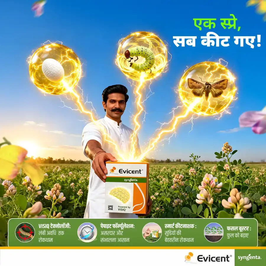 Syngenta Evicent Emamectin Benzoate 5% w/w + Lufenuron 40% w/w WG is a powerful broad-spectrum insecticide developed for effective control of lepidopteran pests. Its dual mode of action ensures rapid feeding cessation within 1–2 hours, followed by pest mortality within 12–24 hours. Evicent delivers strong residual activity and reliable pest management across multiple crops. It helps protect crop health, reduces damage, and supports improved yield by controlling pests at different life stages. Evicent works through a dual mode of action that disrupts insect nervous system activity and growth regulation. Target pests stop feeding within 1–2 hours of application and die within 12–24 hours, ensuring effective and sustained pest control. Lepidopteran pests, including Fall Armyworm (FAW), Diamondback Moth (DBM), Helicoverpa and related species