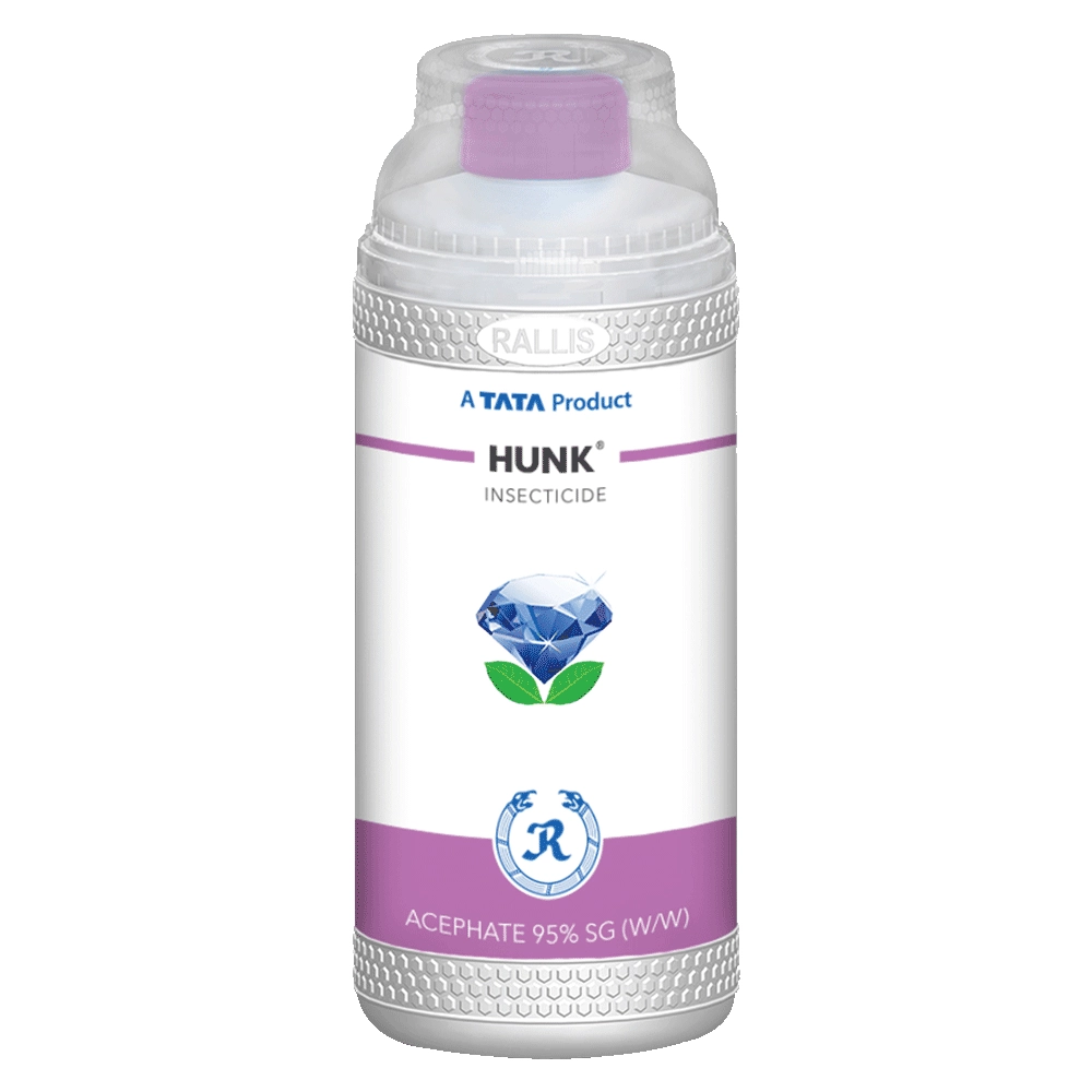 Tata Hunk is a broad-spectrum insecticide that targets various pests such as Jassids, Aphids, and Thrips on multiple crops. It comes in a Soluble Granule (SG) formulation, which is easily dissolved in water. This formulation is dust-free and odor-free, making it safe to use. When Tata Hunk insecticide is ingested by the pests with stomach action, it blocks the enzyme, resulting in their death. This insecticide features a dual mode of action, systemic and contact, making it suitable for IPM (Integrated Pest Management) techniques. Triple-action Insecticide : Tata Hunk insecticide targets pests effectively through systemic, contact, and stomach action. Rainfastness Formula : Tata Hunk insecticide controls pests even during rainy weather conditions, reducing continuous application. Extended Protection : It translocates deeply inside the crops and lasts for a longer period with systemic action. Great Compatibility : This insecticide is suitable for use with other pest controllers, targeting multiple pests with a single application. Tata Hunk insecticide is suitable for crops such as Cotton, Chilli, and Paddy. Hunk insecticide is effective against pests such as Jassids, Thrips, Fruit Borers, Yellow Stem Borer, Leaf Folder, and Brown Plant Hopper (BPH) Wash your hands with soap immediately after using the product.
